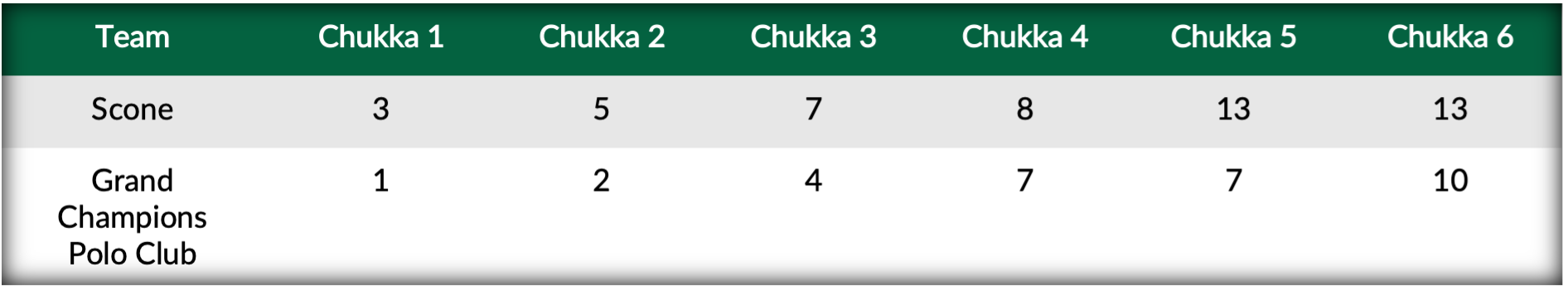 Strategizing in the break, Grand Champions Polo Club started the second half sending Aguerre out front to great success, as Aguerre was able to elude coverage to score three straight goals and bring his team back within one. Sending David Paradice in coverage to halt Aguerre, Cambiaso drove his sixth field goal through the posts to initiate a commanding five goal run for Scone, including Magrini’s third and a drawn Penalty 1. Carrying a comfortable six-goal lead into the final chukker, Grand Champions Polo Club’s Pieres, Zubia and Bollini each contributed offensively, while their defense was able to leave Scone off the board for the first time in the match. Unable to complete the comeback despite the phenomenal effort of Aguerre’s four goals, the strength of Scone’s fifth chukker and firepower from Cambiaso gave Scone the 13-10 victory.