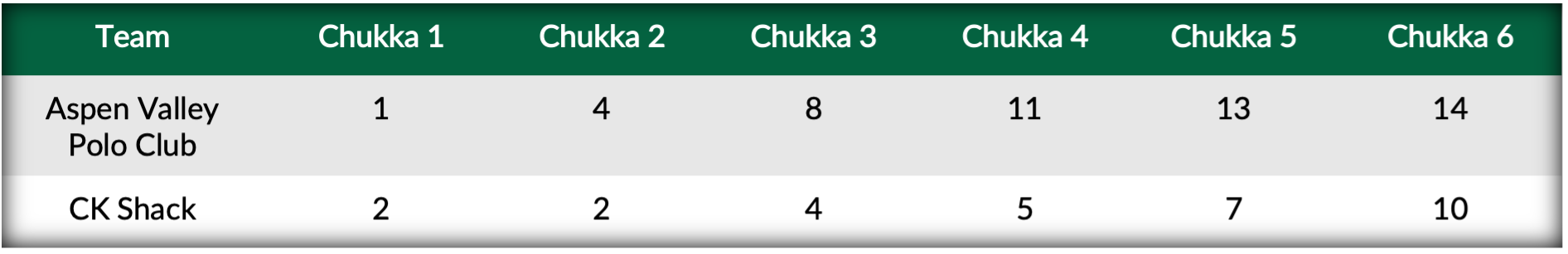 Allowing their third chukker momentum to carry them into the second half, Astrada continued his spectacular day with two more penalty conversions, as 10-goaler Pablo Mac Donough joined in Aspen Valley Polo Club’s offensive action sinking his first of three goals in the half. Replacing an injured Kris Kampsen, Peco Polledo made an impact for CK Shack offensively, but despite two goals from Toccalino in the field, CK Shack continued to trail by three. Converting his third Penalty 2 of the match, a steady Astrada lead his team from the line, while Mac Donough gave Aspen Valley Polo Club more breathing room on a run of three consecutive goals from the field to take the 12-5 advantage. Assigning all CK Shack members to the task of attempting a late comeback, goals from Toccalino, Polledo, Martin “Facha” Valent and Henry Porter brought their team within striking distance, however insurance goals from Aspen Valley Polo Club’s Tommy Collingwood and Mac Donough’s sixth goal of the game sealed the comfortable 14-10 victory for Aspen Valley Polo Club.