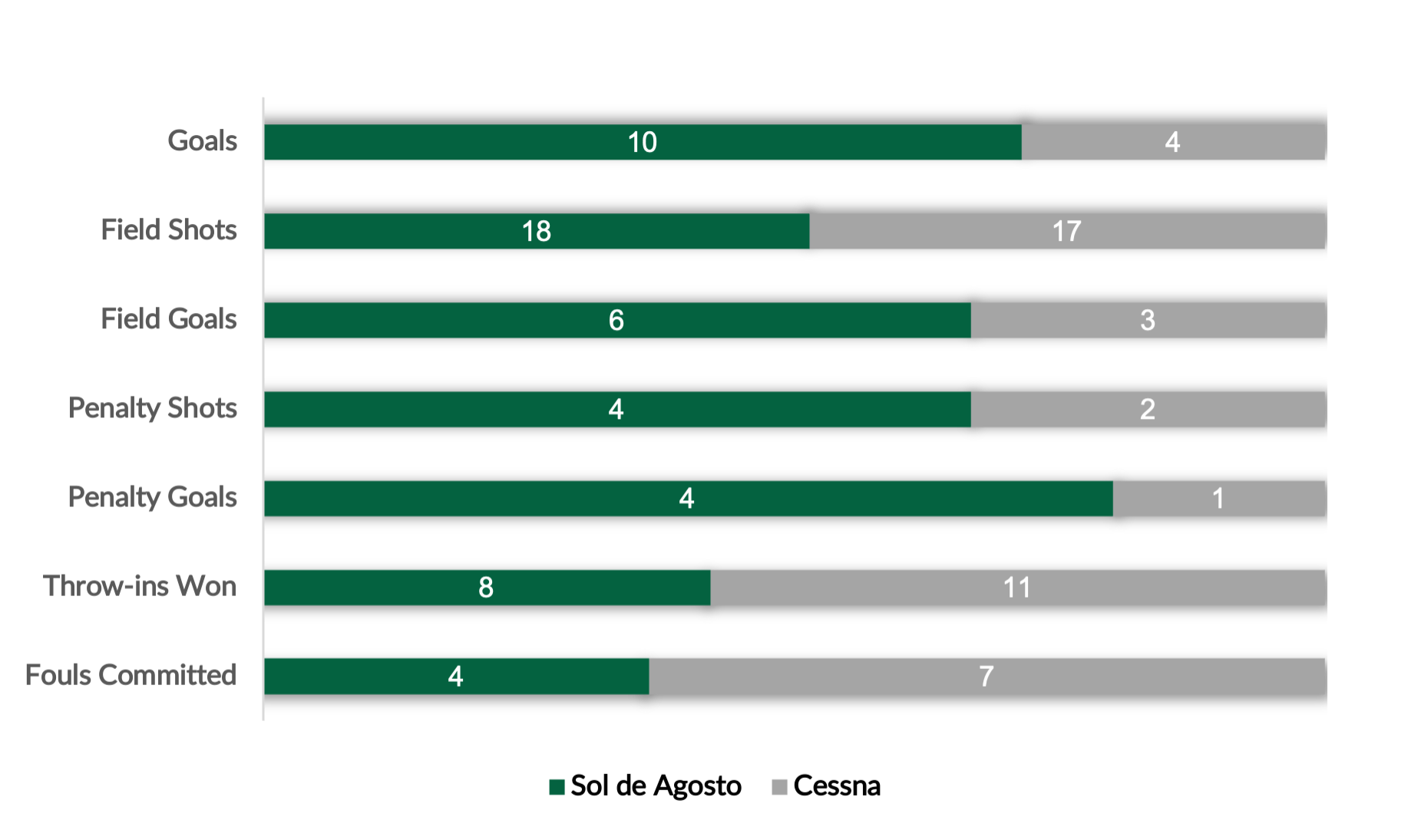 Struggling to find space in the field, Johnston evaded Sol de Agosto’s overwhelming defence long enough to score his second. Keeping the pressure on their opponents despite the score, Nero and Narvaez Jr. combined once more to account for four Sol de Agosto goals in the second half. Goals from Raul “Gringo” Colombres from the line and substitute Alejo Taranco in the field kept Johnston from posting Cessna’s only goals of the match, but Sol de Agosto’s overwhelmingly efficient start and smothering defense secured their second tournament victory 10-4.