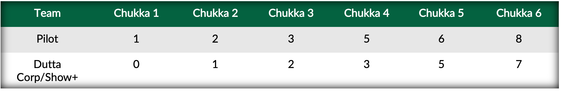 Pilot immediately made their mark on a quick opening drive from Weisz to begin the game. In a low scoring first half, the two teams traded goals in the second and third chukkers, with Dutta Corp/Show+’s Tomas Garcia del Rio leading his team from the penalty line, while Pilot’s leading scorer Facundo Pieres responded to take a 3-2 advantage for Pilot into the break.