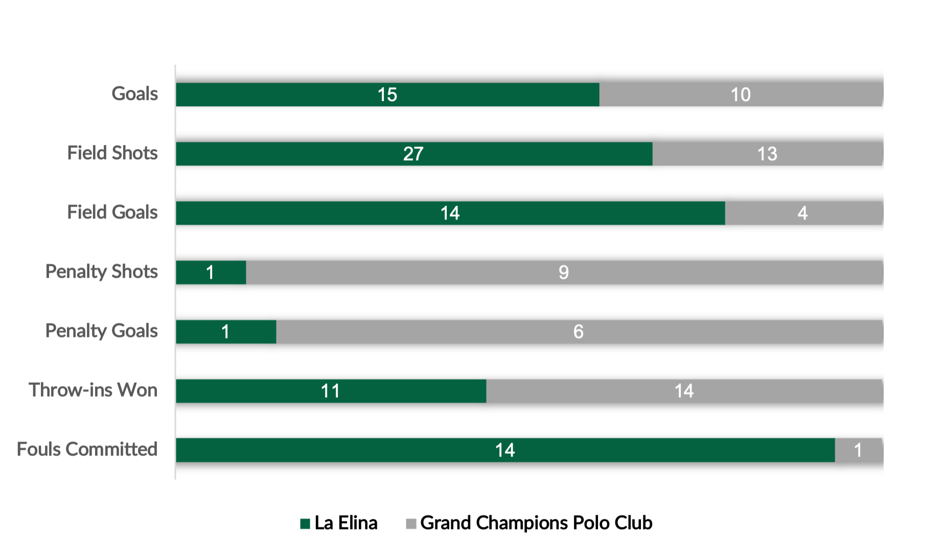 Outshooting Grand Champions Polo Club by ten in the first half, La Elina’s Facundo Obregon contributed two more goals in open play to open the second half, as Pieres continued to strike from the line with a Penalty 3. In a high scoring fifth chukker, seven total goals crossed the line, with Juan Martin and Facundo Obregon accounting for four, as a firing La Elina carried a comfortable 14-8 lead into the final chukker of play. Only able to score in small increments, with their largest run coming off the mallet of Pieres in the fifth chukker, Riley Ganzi tapped in one final goal for Grand Champions, but La Elina’s ability to score from the field and the firepower of the Obregon’s ultimately overtook their challengers 15-10.