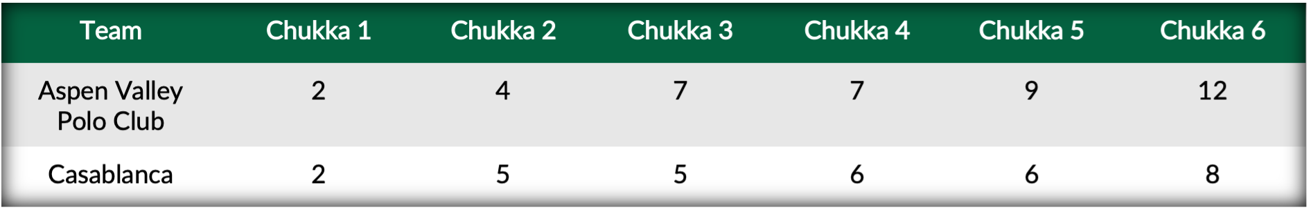 With both sides tightening on defense to open the second half of play, the only goal in the fourth chukker came from the mallet of Echezarreta to bring Casablanca back to within one. With four of their seven goals coming from the penalty line, Aspen Valley Polo Club finally broke through in the field, assembling a brilliant run of five unanswered goals with each teammate reaching the scoreboard. Pushing Casablanca back on their heels, Aspen Valley Polo Club’s offensive blitz was finally slowed by Agustin Merlos, who scored back-to-back goals, but it left Casablanca still in need of goals with time expiring. Ultimately, the united play of Aspen Valley Club in the fifth chukker proved to be the difference as Casablanca was unable to mount a comeback in the 12-8 defeat.