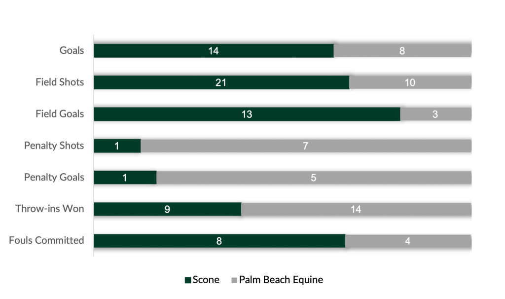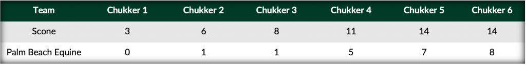 Filling in for Scone’s injured David ‘Pelon’ Stirling, Sapo Caset made an immediate impact in his Florida season debut. Seamlessly slotting into the captain position, Caset combined with Ellis and Cambiaso to account for seven first half goals. Dominating on both sides of the ball, Scone held Palm Beach Equine to just three shots from the field, as two missed Palm Beach Equine penalty attempts saw Scone take a commanding 6-1 lead at the break. Bringing themselves back into contention, a productive fourth chukker featured back-to-back drives from Llosa and two conversions off the mallet of Colombres. Keeping the pressure on Palm beach Equine, Cambiaso found the posts on three of his four attempts. Earning most of their offensive production at the line, one final penalty goal from Colombres wasn’t enough to match the fire power of their sharp shooting opponents, as Scone seized the 14-8 victory.
