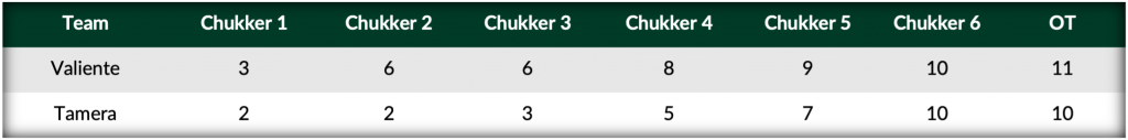 Kicking off Tuesday’s action on Isla Carroll West, Valiente and Tamera began their contested battled from the first throw-in. Early contributions from Criado Jr. and Cambiaso were quickly matched stride-for-stride from Tamera’s Saravi and Cavanagh. Generating separation in the second, goals from Cambiaso, Criado Jr. and Gonzalez vaulted Valiente to a 6-3 lead at the horn. Trading goals to open the second half, Tamera was suddenly faced with a strategy re-alignment as Rufino Bensadon made an appearance to fill in for an injured Cavanagh. Rallying in the fifth, back-to-back goals from Saravi and Bensadon brought Tamera within three. Following field goals from Zacharias and Saravi, it would be high-stakes conversions from Bensadon and Criado Jr. that would ultimately force overtime. Wasting no time to claim the victory, a powerful drive from Cambiaso narrowly missed the goal, but a final Penalty 2 awarded to Valiente saw Criado Jr. send the ball through the posts for the 11-10 win.