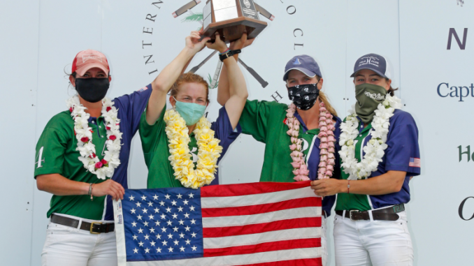 Taking on a fierce opponent in Hawaii Polo Life, BTA/The Villages’ commitment and positive attitudes eventually paid off with the trophy. “This win means the world, to be able to go 4-0 in a 22-goal tournament like this just goes to show you how deep we can go as a team,” Busch said. “We’ve had our opportunities in the past and the beautiful thing about this team is we all just played as one and nobody gave up. We continued to give each other positive reinforcement nonstop.” “I have been trying to win this tournament since 2012 so this win was huge!” Krueger added. “Obviously I wish my mom [Chrys Beal] could have been out there with me. We tried so many times at Houston Polo Club [Houston, Texas], but still to play with an all-American team is amazing and for each of us to have our own horses and organizations.”