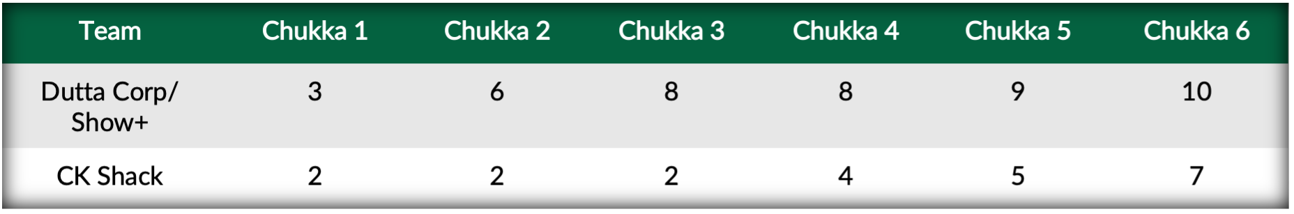 Assembling on Field 3 for the second match of the doubleheader, an undefeated Dutta Corp/Show+ got off to a dominant start. Surrendering two Penalty 2’s to Santiago Toccalino and CK Shack in the first chukker, Dutta Corp Show+ produced an eight-goal blitz in the first half to race ahead. With a complete team effort, each member of Dutta Corp/Show+ added their name to the scoresheet, with Tomas Garcia del Rio, Inaki Laprida and Timmy Dutta each adding two goals. Dominating possession and winning the battle in open play, Dutta Corp/Show+ held CK Shack to just two goals from the field in the first half. Scoring all but two of their eight goals from the field, Dutta Corp/Show+’s carried a comfortable 8-2 lead into the break.