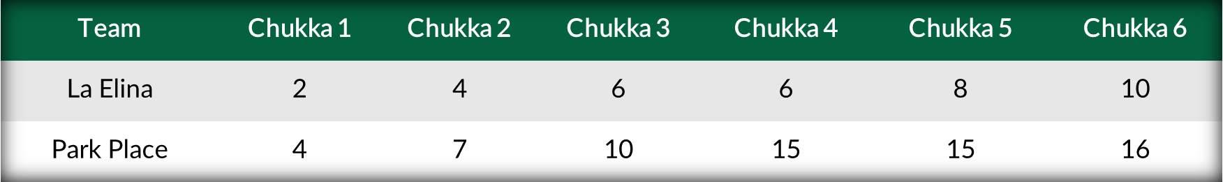 Entering the game with one goal on handicap, La Elina doubled the advantage on a Penalty 2 conversion from Sapo Caset in the opening moments of the first chukker. Park Place quickly responded led by the efforts of Ulloa and Cody Ellis who combined for four goals and an assist during a stretch of four consecutive goals that resulted in a 4-2 lead. Continuing to pressure the La Elina defense, Park Place extended their to five after field goals from Ulloa, Ellis and Hyde to begin the second chukker. The quick pace produced end-to-end polo as La Elina attempted to battle back to even, but the teams exchanged goals throughout the remainder of the first half. Two Penalty 2 conversions for Caset were matched by three field goals from Britos as the horn sounded with Park Place ahead 10-6.