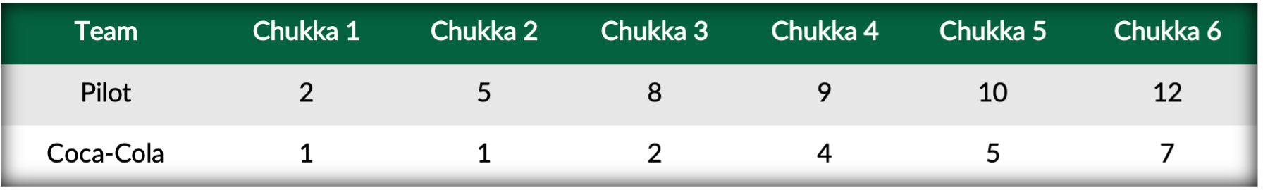 Reconvening at La Indiana for the final matchup of the doubleheader, 10-goaler and Pilot’s top scorer Facundo Pieres burst into action to set the tone and post an early 2-0 lead. After falling to Cessna in overtime of their first USPA Gold Cup® game, Nico Escobar responded for a Coca-Cola team needing to generate a strong first half. Fast and open end-to-end play largely free of penalties allowed Pilot to hone in their offensive abilities, as 69% field shooter Matias Torres Zavaleta ignited an impressive run of six Pilot goals, including four off the mallet of Mackenzie Weisz. Trailing 8-1 at the end of the third chukker, Escobar finally halted Pilot’s offensive takeover on a deep neckshot to score Coca-Cola’s second goal of the game, ending the half carrying an 8-2 deficit.