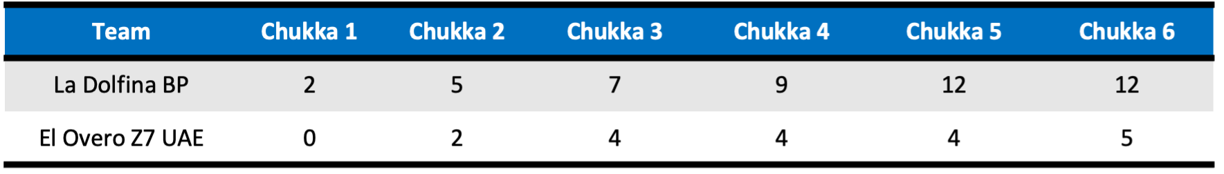Continuing their offensive onslaught in the fourth, La Dolfina BP’s Clarkin converted from the penalty line, as Cambiaso scored her second goal of the day. Clarkin would shine in the fifth, adding two penalty conversions and another from the field to account for all the scoring from either team in the chukka. Salvo managed to convert one last penalty opportunity for El Overo Z7 UAE, however, the inability for El Overo Z7 UAE to mount a successful offensive counterattack against La Dolfina BP’s consistency, saw La Dolfina BP rise once again as 12-5 champions.