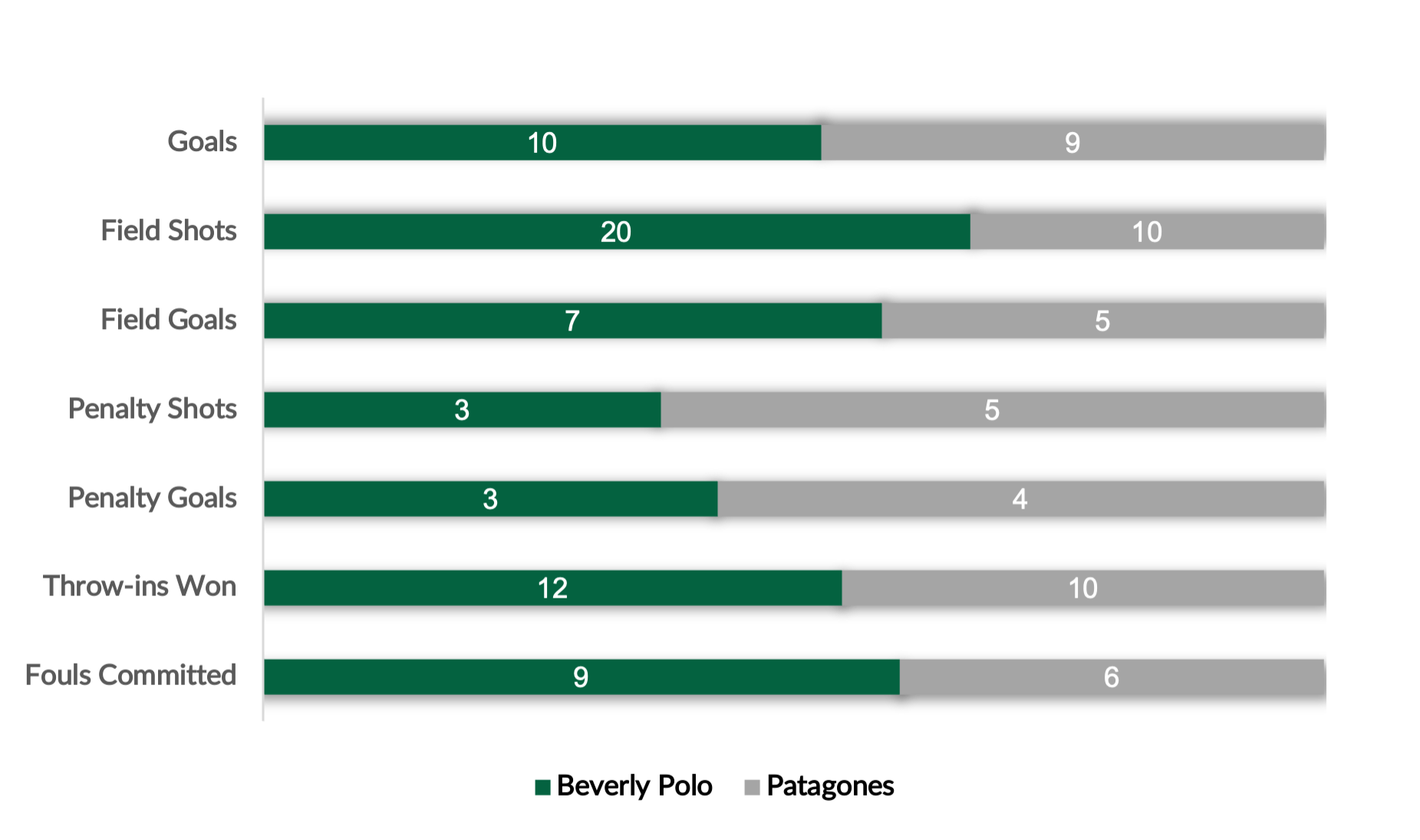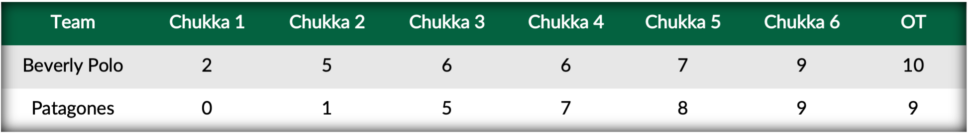 Looking for their first win of the tournament, an energized Beverly Polo entered a rematch of the Joe Barry Memorial final against Patagones by opening the scoring on back-to-back goals to hold a 2-0 lead at the end of the first chukker. Tomas Garcia del Rio hit his first goal of the day on a Penalty 2 for Patagones, but an undefended Bill Ballhaus immediately responded, starting a three-goal run for Beverly Polo in the second that extended his team’s lead to four. Regrouping in the third, Patagones finally found some success from the field, receiving goals from Santiago Wulff and Joaquin Avendano to quickly erase the four-goal difference. One final goal from Ballhaus in the latter stages of the third chukker propelled allowed Beverly Polo to cling on to a narrow 6-5 lead at the half.