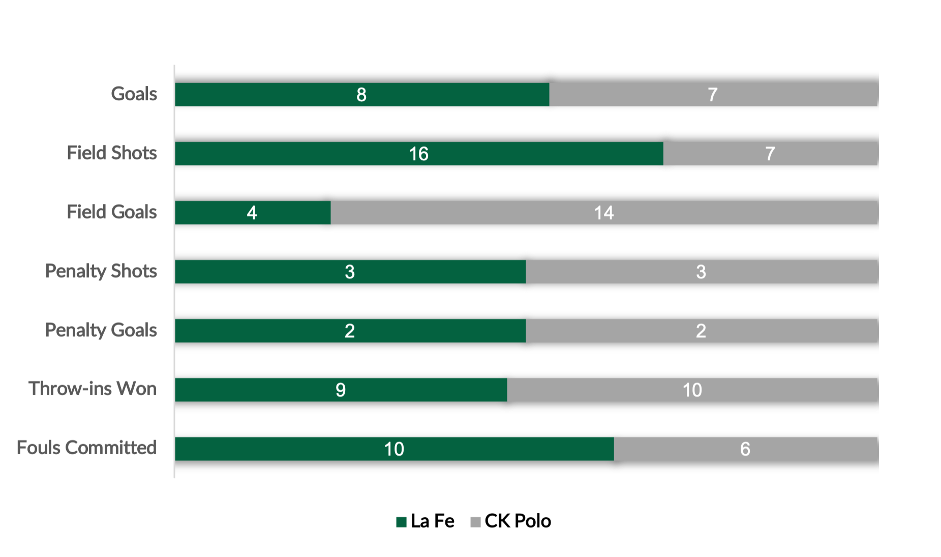Beginning the opening match of the day with a strong hit-and-run strategy, La Fe’s Elizalde led the early charge with two goals from the field and another two from the penalty line. Adjusting once more to a new lineup, the return of Martin “Facha” Valent and Santino Magrini injected yet another fresh look to CK Polo, but they struggled to find chemistry throughout the first half. Following early struggles to find the goal and dominant shutdown play from La Fe’s Louis Devaleix, Santino Magrini finally broke through for CK Polo’s only goal of the half, facing a 5-1 deficit entering the halftime break.