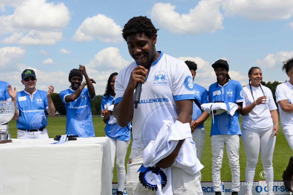 The 23 participants played a four-chukka game with mixed teams from several of Power of Polo’s charity partners: South Central Youth; Marcus Lipton Community Enterprise; Alabaré; Ebony Horse Club; and the Armed Forces Equine Charity. Cool Hooves Polo provided fantastic ponies, instructors and umpires, ensuring a safe and entertaining match played in front of supporters, partners and family. The final score was 3-2 to Power of Polo White Team, and the Change Your Line Charity Cup and prizes were presented by actress Carol Ashby, alongside Amie Mills and Harry Osborne from Sport and Recreation Alliance, an umbrella organisation for over 300 grassroots sporting charities. The highlight of the prizegiving, however, was the moment Youth Trustee and participant Jhemar Jonas delivered an impromptu rap, much to the delight of the crowd!